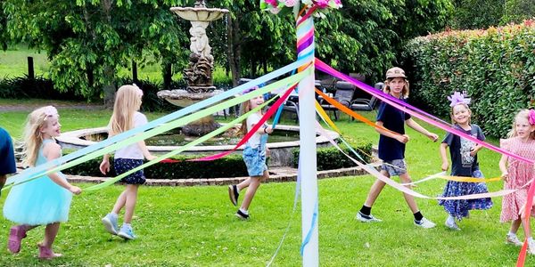 The party package includes various entertaining games and activities. The games may include ring toss, tug o war, maypole dancing, and swings.